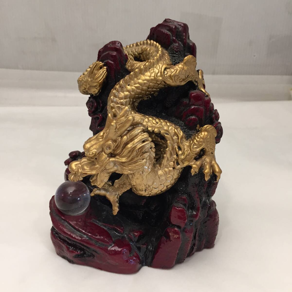 - F082804◎②龍 開運 五本爪山水龍 風水龍 置物 金龍下山 縁起物 昇龍 宝珠 縁起物 樹脂製 縦約9㎝×横約10㎝×高さ約13㎝◎