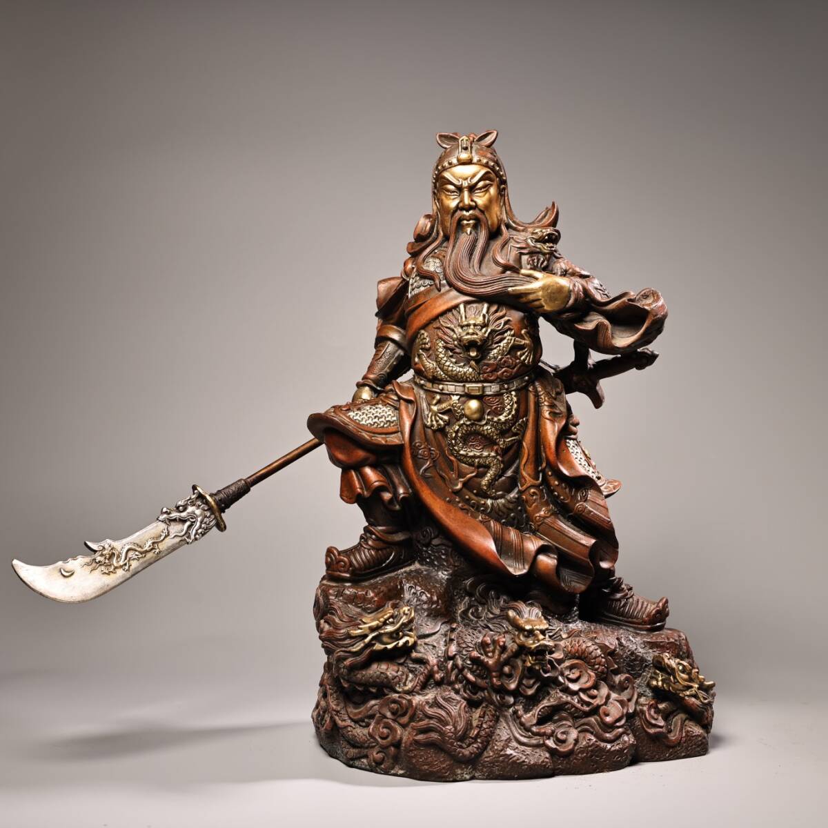 - 旧 清代 宗教仏像 純銅 鍍金銀 九龍関公 古家具 中国古美術 古賞物 古置物 唐物 S78