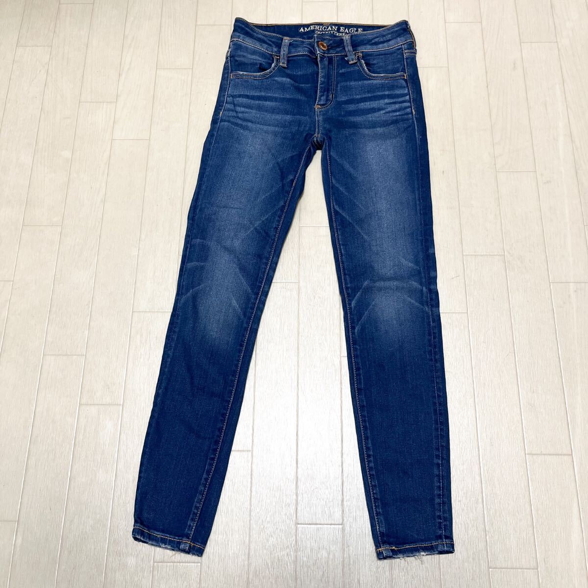 > 和828★ AMERICAN EAGLE SUPER STRETCH アメリカンイーグル スリム スキニー ストレッチ デニムパンツ UK4 ブルー レディース