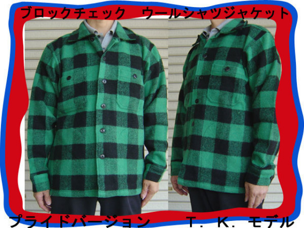 - ブロックチェック・ウールシャツジャケット 新品 Lサイズ プライド厚手ジャケット