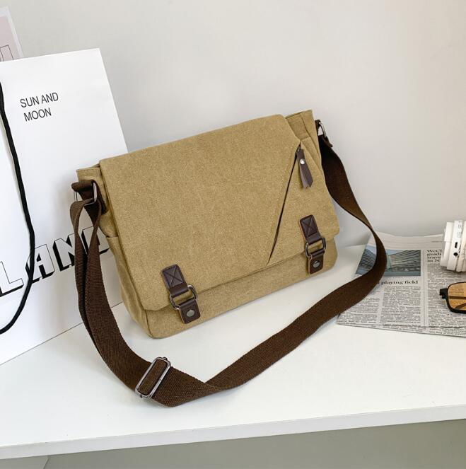 - 人気品多機能 帆布 ショルダーバッグ メンズバッグ 斜めがけバッグ 運動 帆布 軽量 無地 鞄 カバン カーキ色