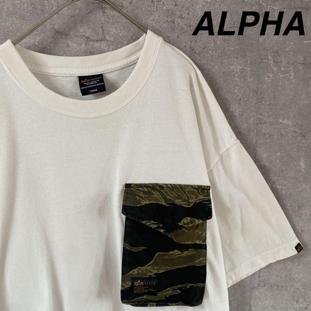 - ALPHA Tシャツ カモフラでかポケット 半袖 メンズLサイズ 大きめ