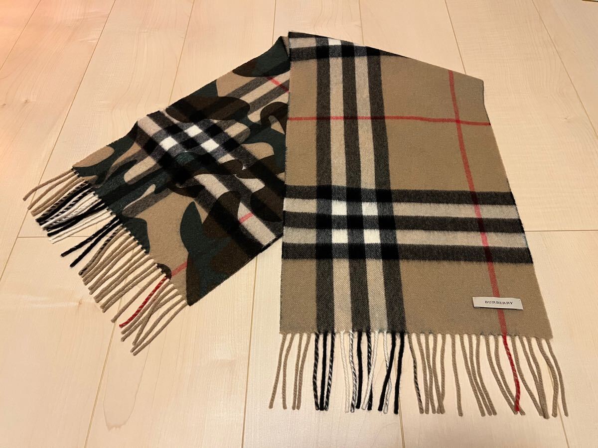 > BURBERRY バーバリー マフラー カシミア100% リバーシブル 迷彩 カモフラージュ 美品 送料無料!!