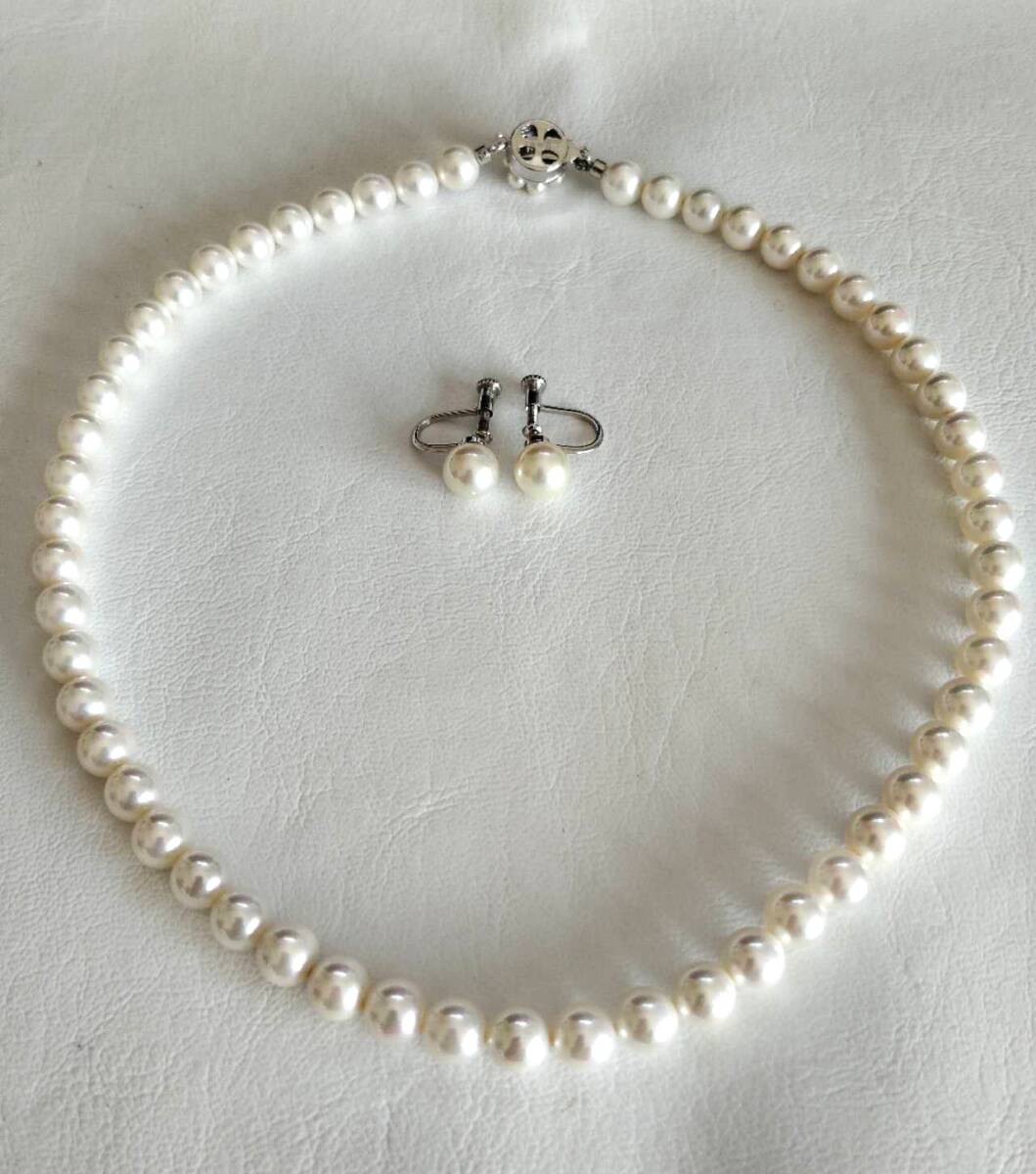 - 真珠ネックレス&真珠イヤリング・淡水真珠・ネックレス真珠直径 7.5 mm・イヤリング真珠サイズ: 8 mm