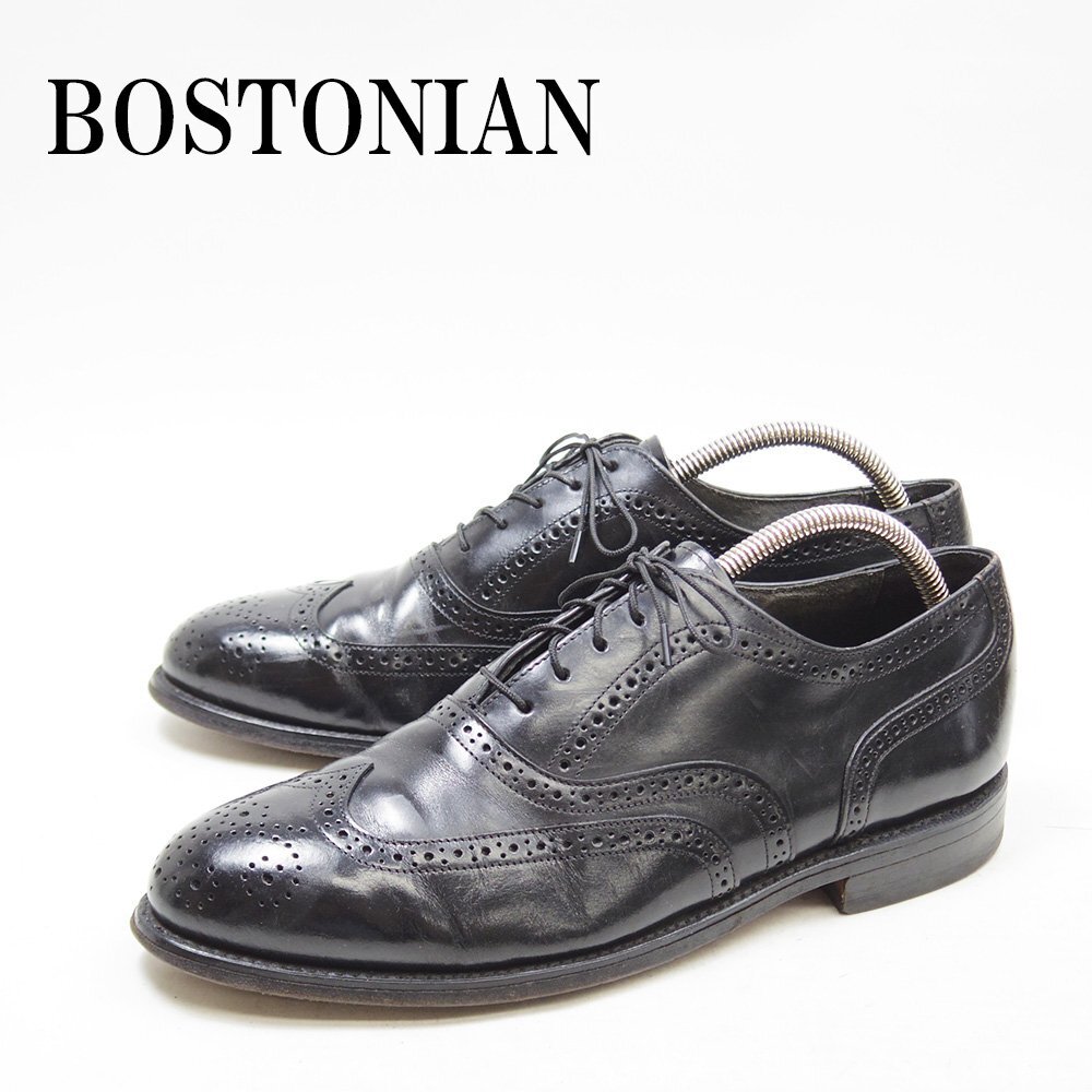 > 11D/B表記 29cm相当 BOSTONIAN ボストニアン アメリカ製 ウィングチップ メダリオン ドレスシューズ ブラック 革靴 25.8.28/P3418