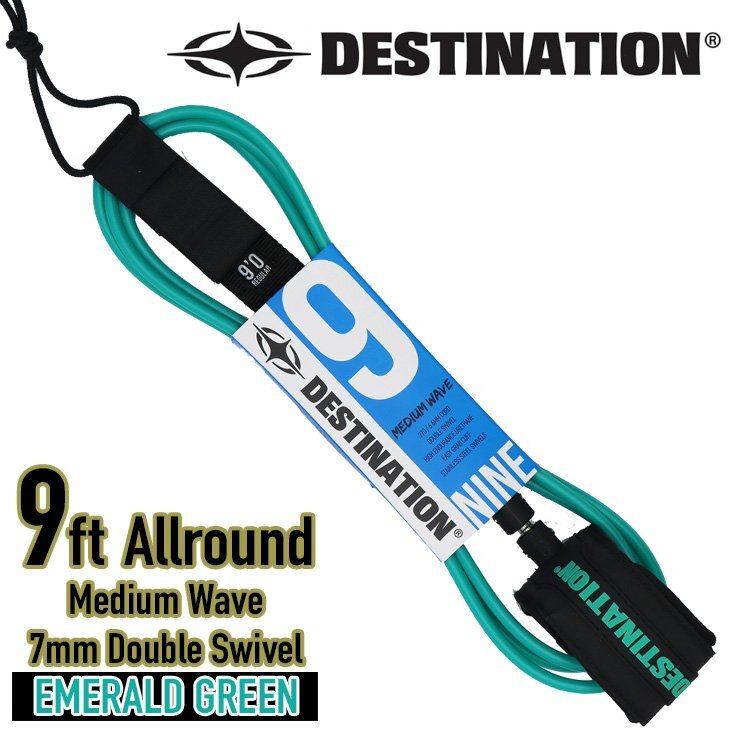 > ■DESTINATION■最新型 9ft Regular [EMERALD GREEN] オールラウンド用 エメラルドグリーン ロング リーシュコード ディスティネーション
