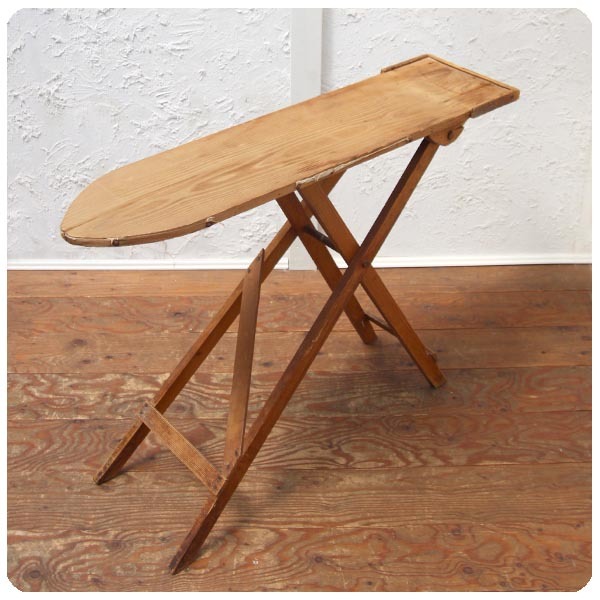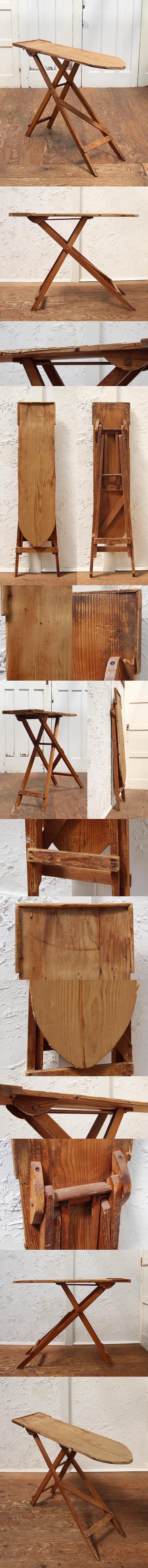- イギリス アンティーク アイロン台 折りたたみ式 ディスプレイ台 アイロンボード パイン材 家具 K-735
