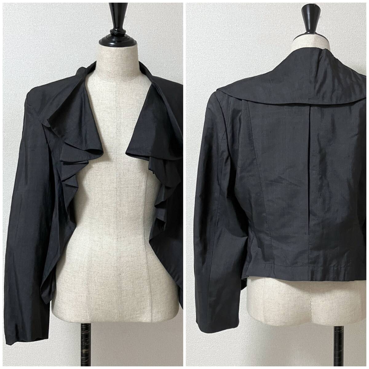- 80s COMME des GARCONS シルク100% フリル ボレロ 変形 ジャケット グレー系 Sサイズ コムデギャルソン 羽織り VINTAGE archive 5080059