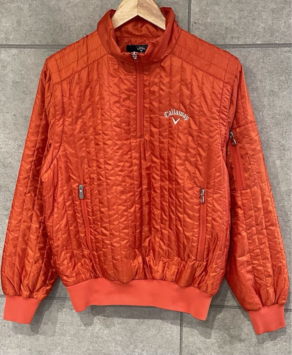 - 秋冬に! Callaway キャロウェイ 2WAY キルティング 中綿ジャケット プルオーバー オレンジ Mサイズ メンズ ゴルフウェア ◯ 新規×