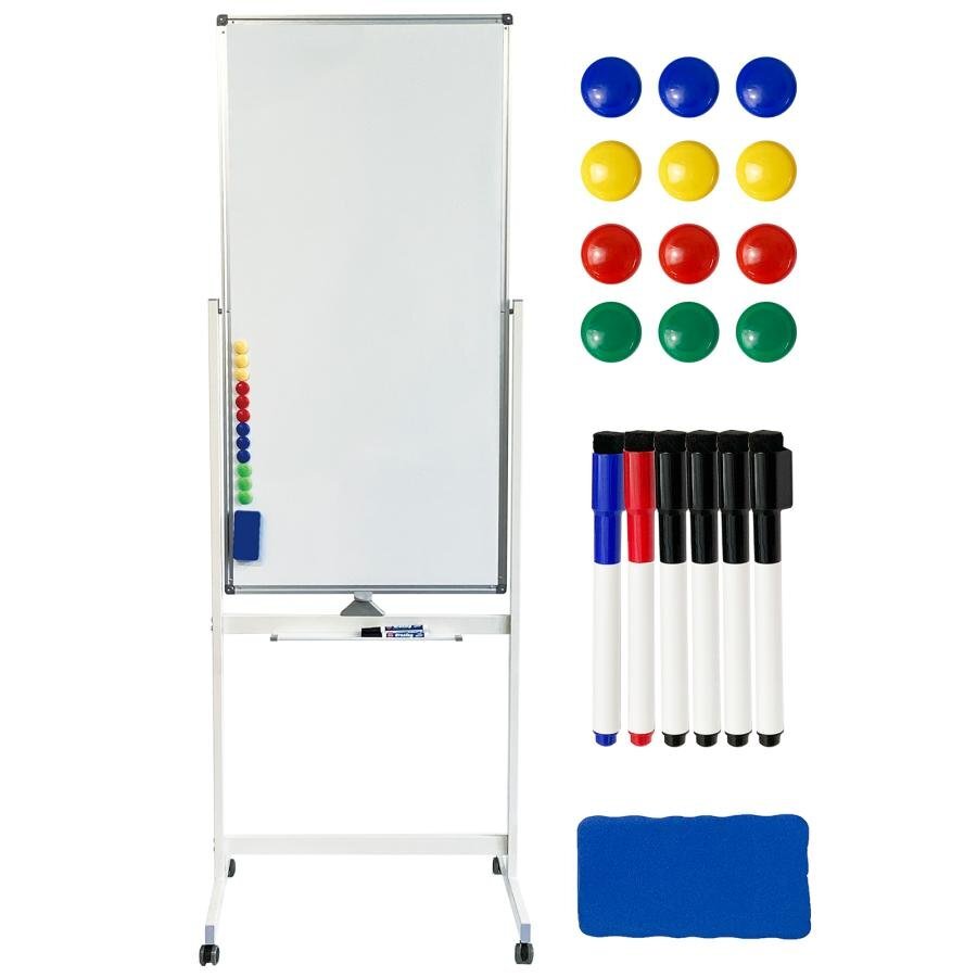 - ホワイトボード 脚付き 1200×600 両面 回転式 スチール キャスター付き ホワイトボードマーカー付属 ホワイト