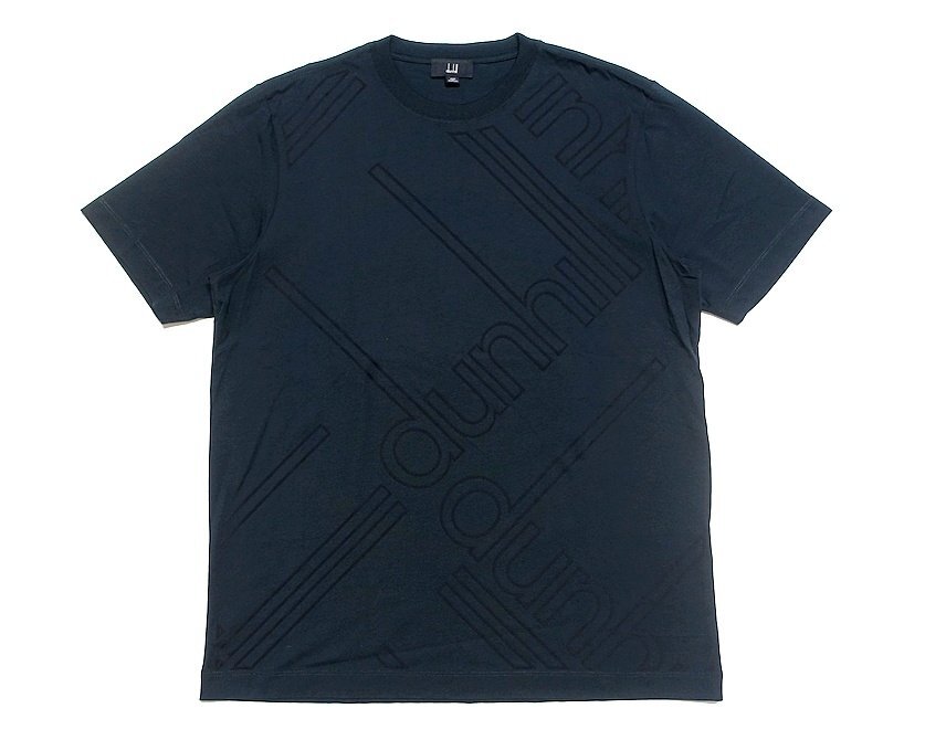 - 新品同様 極美品 dunhill ダンヒル フロッキープリント オーバーロゴ Tシャツ ダークグレー コットン メンズ L ビッグロゴ カットソー