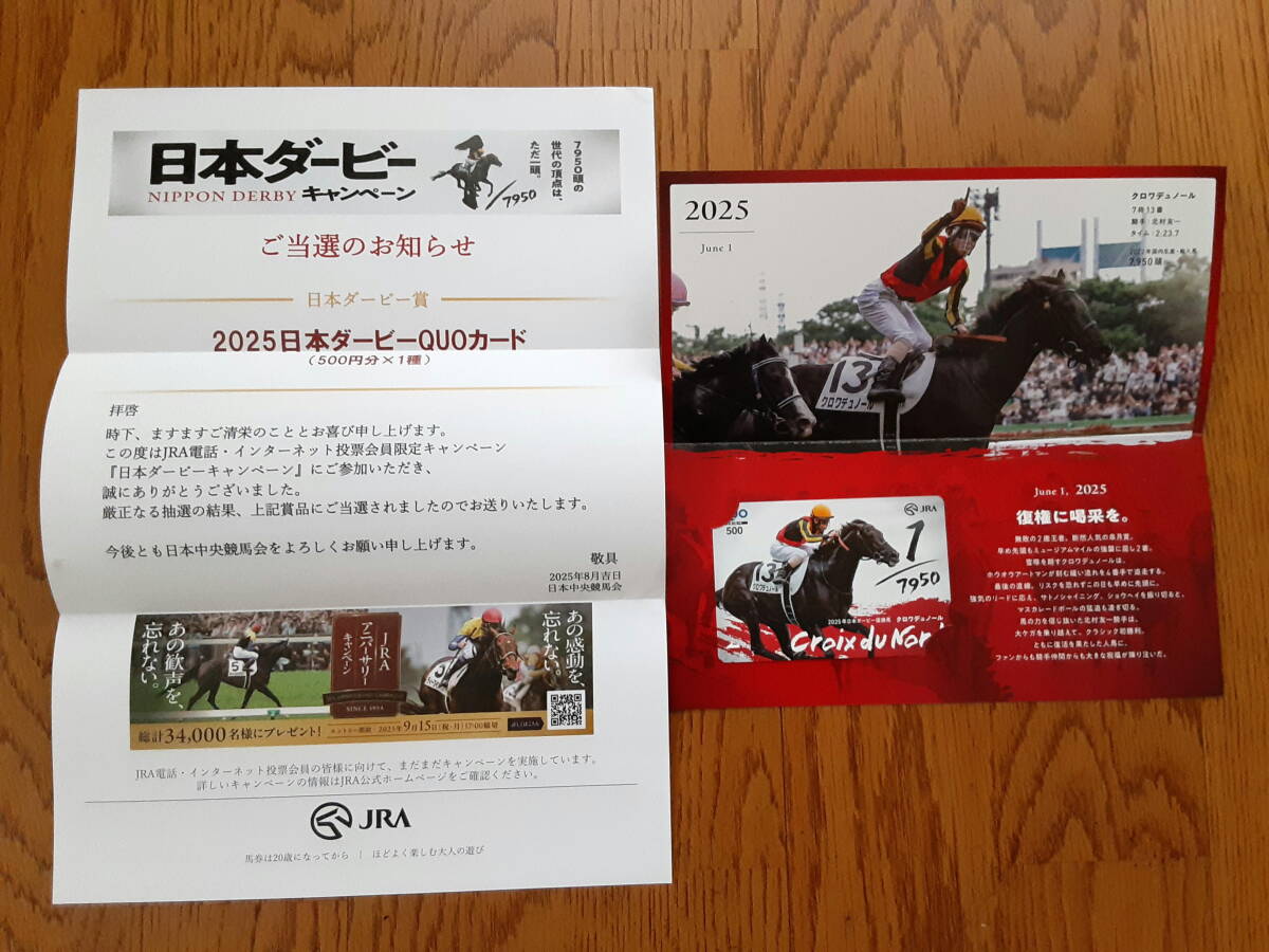 - JRA 日本ダービーキャンペーン クロワデュノール クオカード 500円 台紙付き