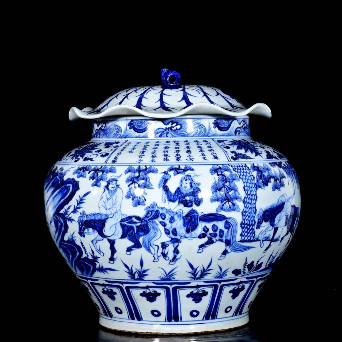 > 8~QN7829 中国磁器 陶芸 磁器『元青花昭君出塞人物故事紋蓮葉壺』施釉陶 古代工芸品 陶芸 精美彫 置物 收藏品