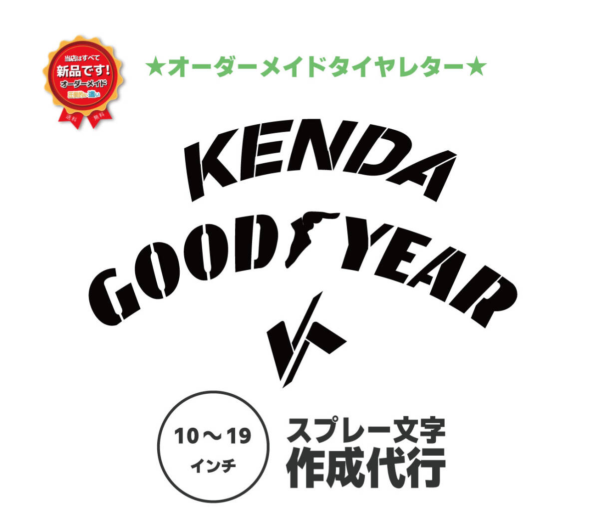 「GOOD YEAR でタイヤサイズが16インチで、文字高さ4cmで作成願います。。」 等