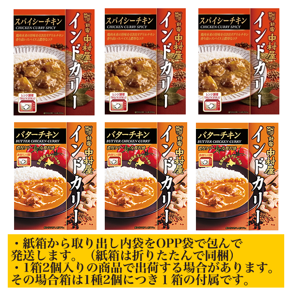 - ■新宿中村屋 インドカリー(スパイシーチキン・バターチキン) 2種6箱■