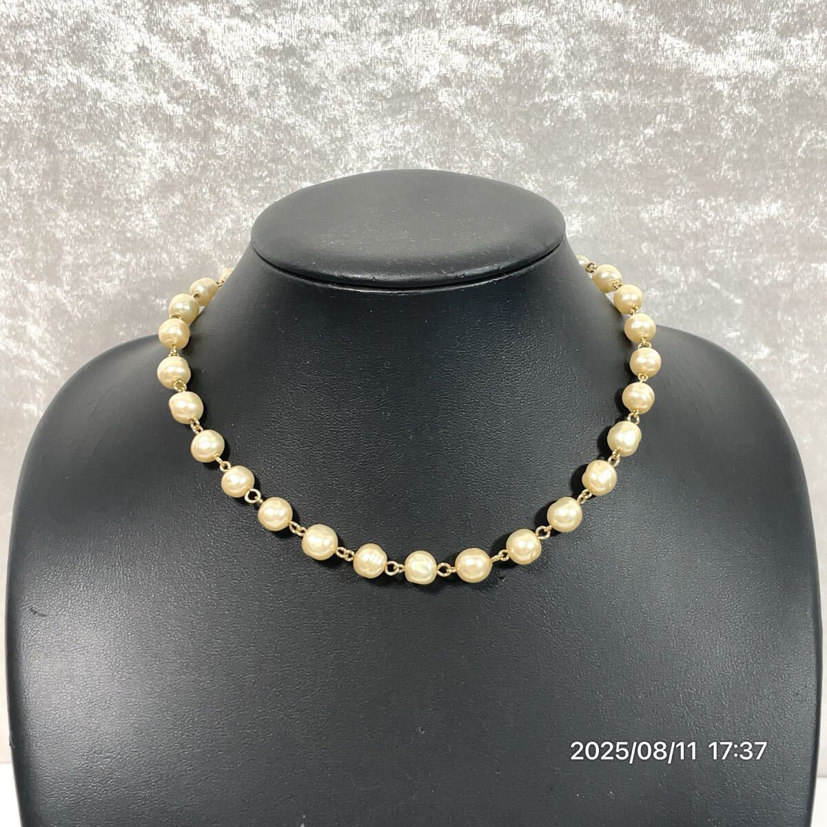 > YSL イヴサンローラン ハートモチーフ ラインストーン パール風 ネックレス チョーカー アクセサリー 装飾品 ファッション 小物