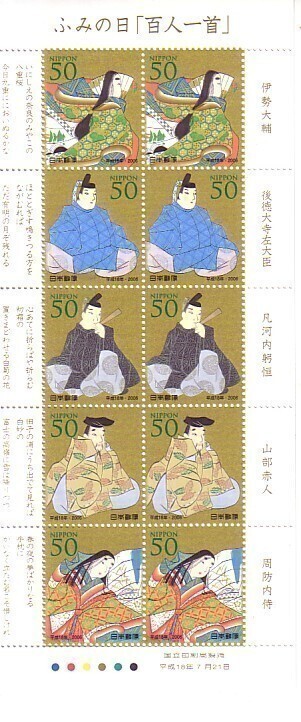 - 「ふみの日「百人一首」平成18年」の記念切手です