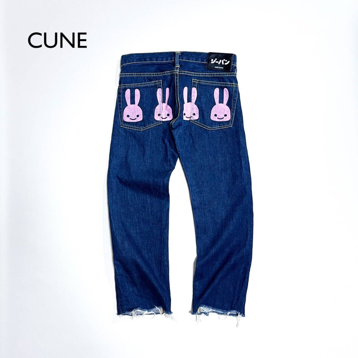 - ch93 CUNE ジーパン デニムパンツ ピンクうさぎプリント 4連うさぎ ポケット ボタン