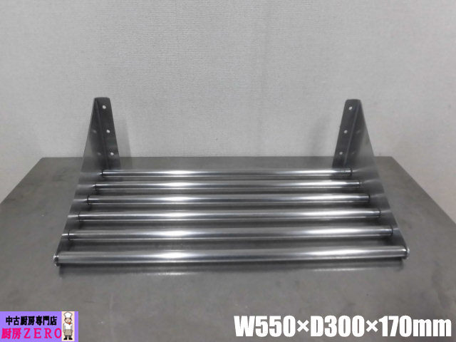 > 中古厨房 業務用 吊り棚 吊戸棚 ステンレス パイプ棚 W550×D300×170mm 棚奥行き290mm 収納 調理場 店舗 飲食店