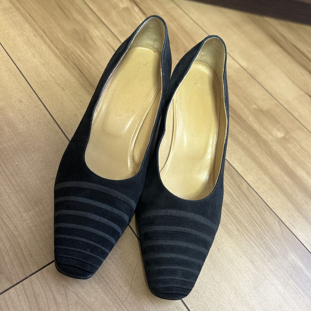 > yoshinoya 銀座ヨシノヤ ブラック系 24cm 靴 ヒール パンプス 普段使い ダンス パーティ シューズ スウェード 黒スウェード