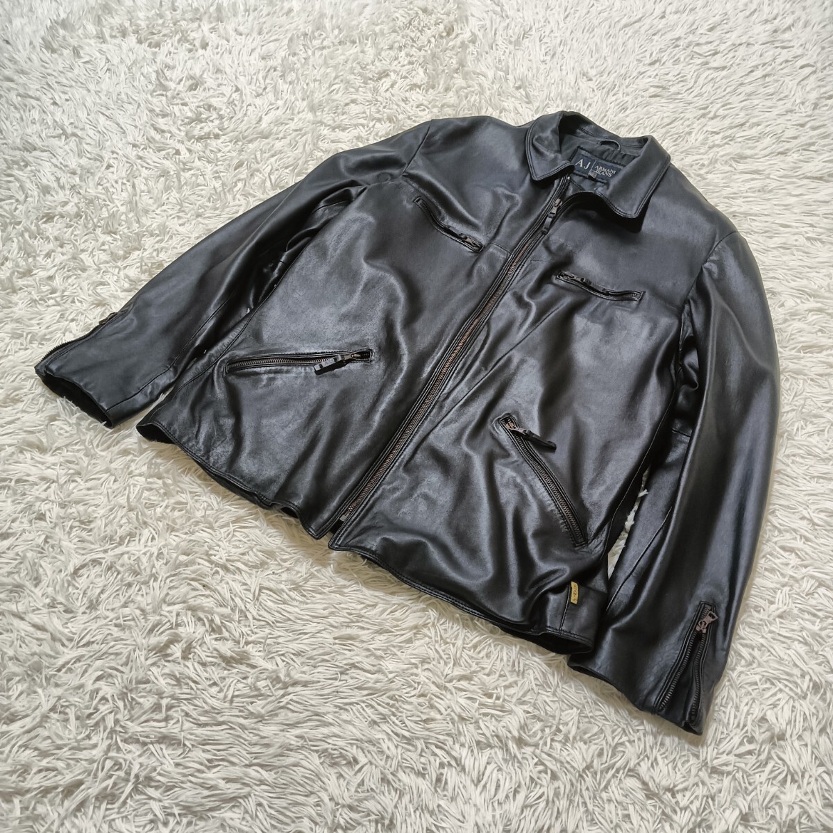 > ★90s アルマーニジーンズ レザージャケット カーコート サイズXL〜XXL 本革 ブラック 黒系 アーカイブ ヴィンテージ オールド 古着 USED