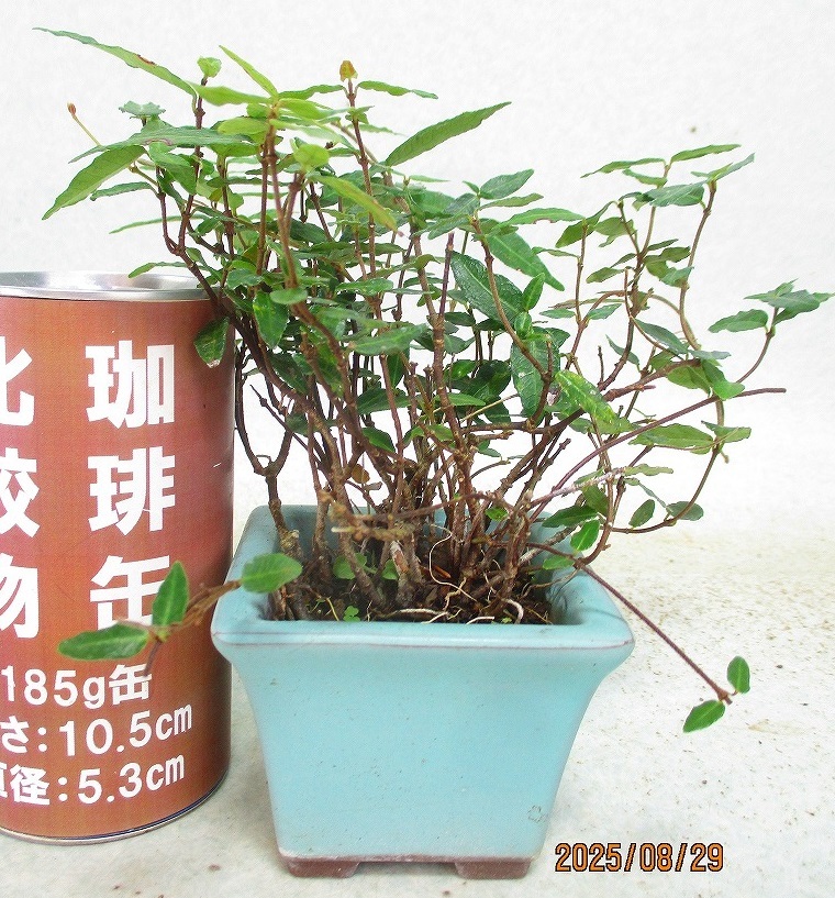 > [緑の市場] ミニ盆栽 チリメンカズラ (81267均釉正方鉢)全高:16㎝【小型送料】*同梱包対応「まとめて取引」厳守*60サイズ送料明記