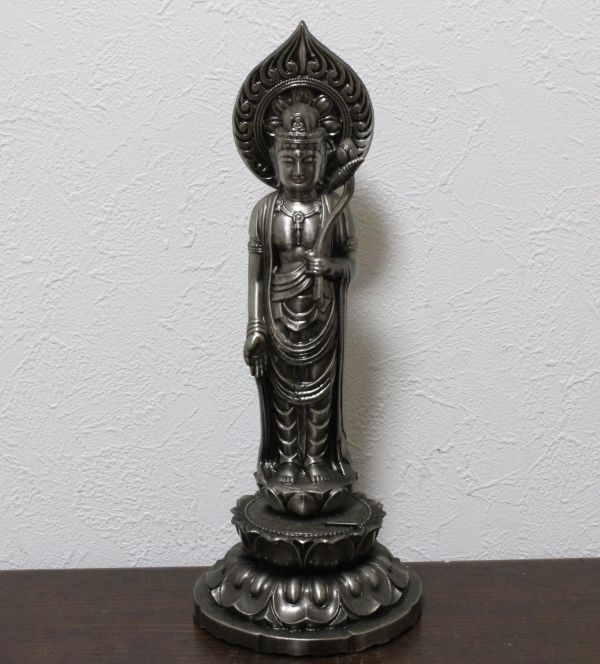 - 仏具屋さんからの買取品 金属製の綺麗な銀色の観音菩薩像 ブロンズ 銅仏像 n314