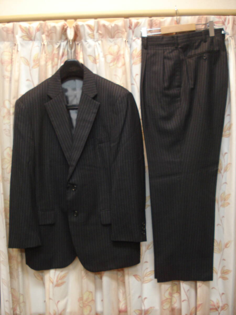 > 送料無料!ズボンクリーニング済み!美品!秋・冬物!高級!オーダーメードスーツ!AB6サイズ相当!ウェスト90cm!定番シングルスーツ!