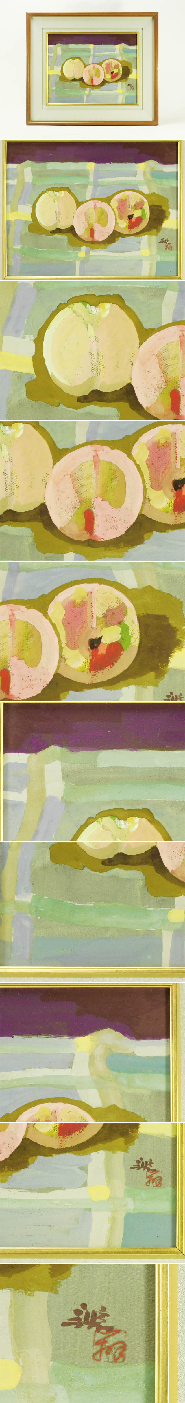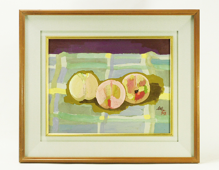 - 麻田辨自(麻田弁自)桃 6号 日本画 紙本 額装 共シール 専用タトウ 師西村五雲 文部大臣賞 日本芸術院賞 s25080504