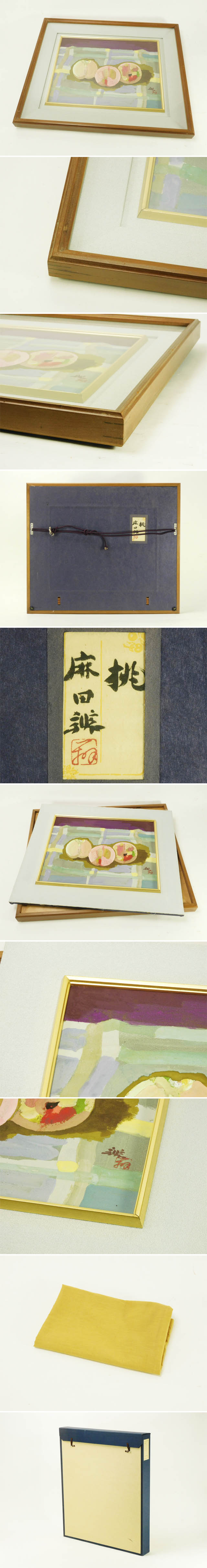 > 麻田辨自(麻田弁自)桃 6号 日本画 紙本 額装 共シール 専用タトウ 師西村五雲 文部大臣賞 日本芸術院賞 s25080504