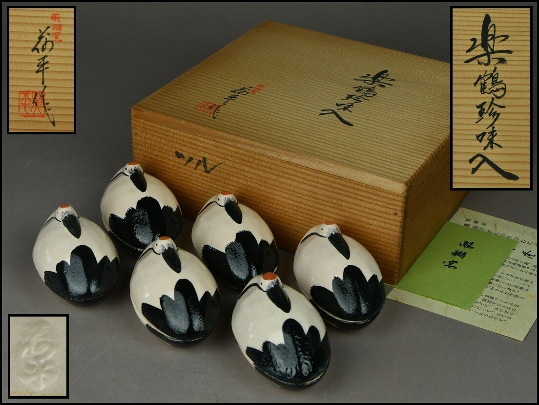 - 京焼 醍醐窯【島荷平】楽鶴珍味入 蓋物 共箱 懐石道具 DR25-0520