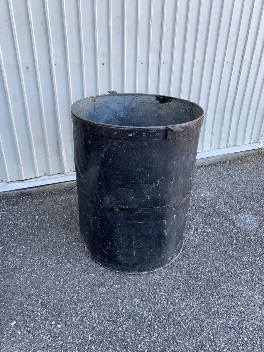 - 経年の雰囲気が素敵な黒く塗られた円形ブリキケース インダストリアル工業系アンティークビンテージ古道具インテリアディスプレイ店舗什器