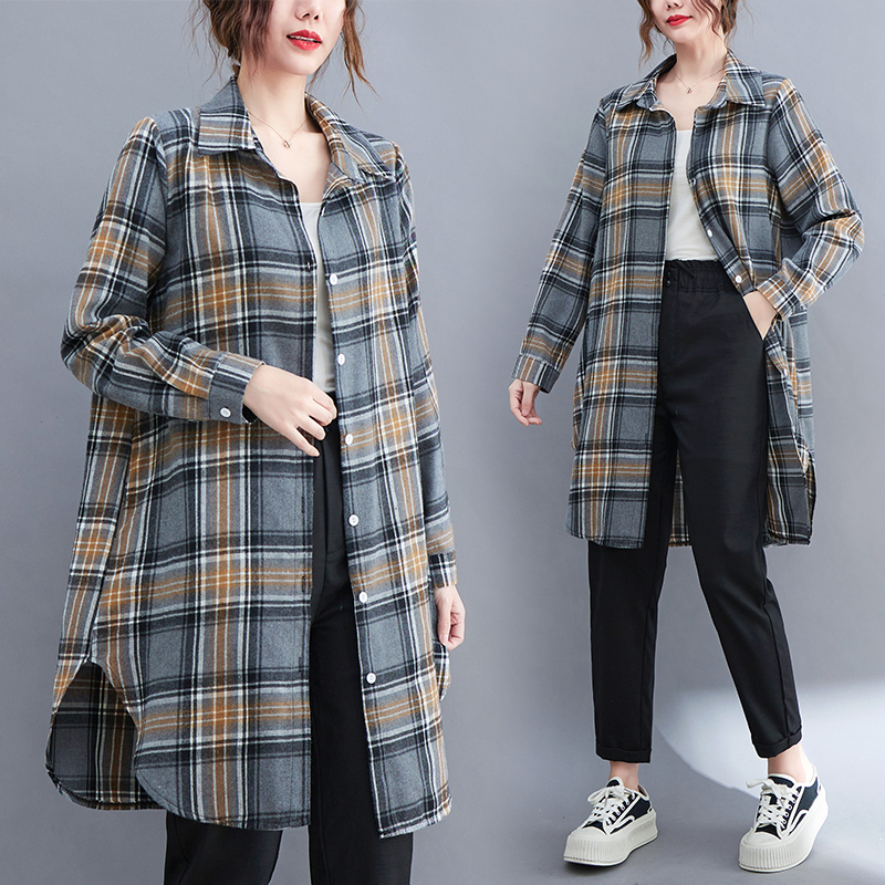 - 新入荷* カジュアル ロングシャツ 大きいサイズ チュニック 長袖 レディース アウター チェック柄 着やせ ゆったりシャツ カーディガン