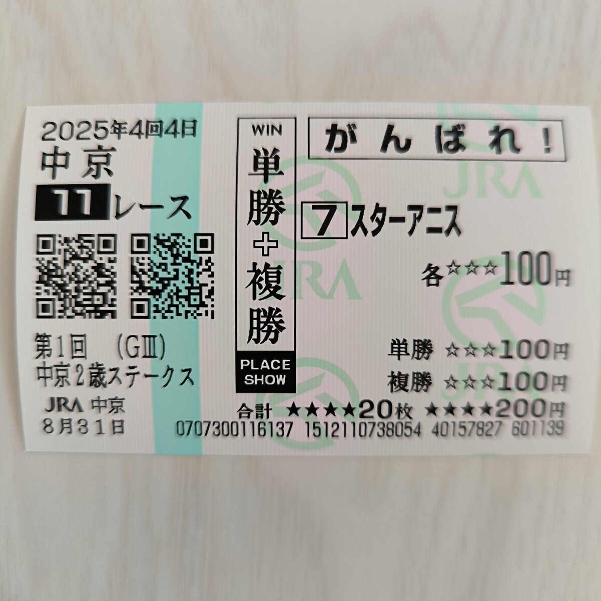 - 中京2歳ステークス2025 スターアニス がんばれ馬券 匿名発送