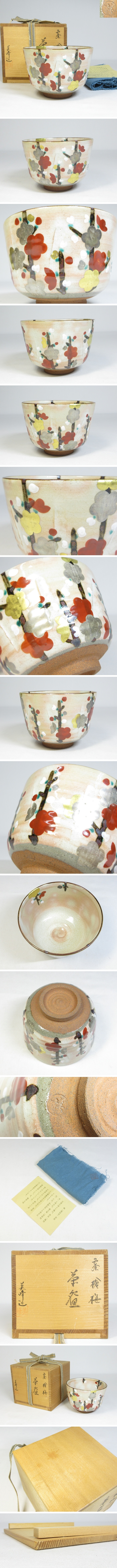 - 【B0512c】茶道具 京焼 『 橋本美峰 』作 色絵 槍梅 茶碗 共箱 共布 栞付き 即決 送料込み