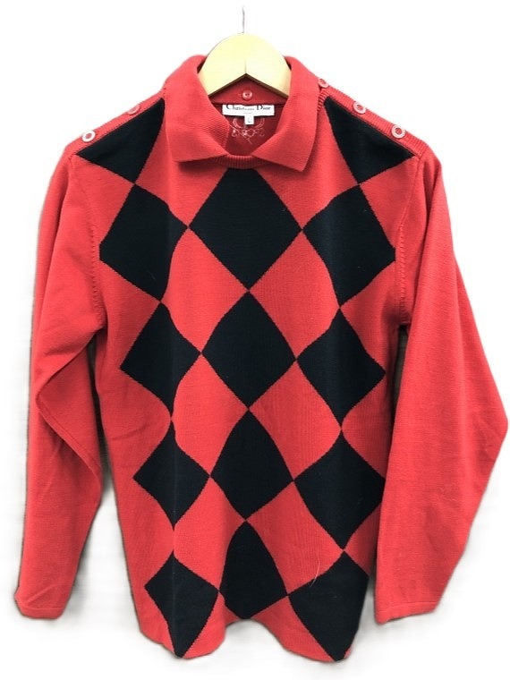 - クリスチャンディオールスポーツ Christian Dior SPORTS ヴィンテージニットポロシャツ カーディガン レッド ブラック