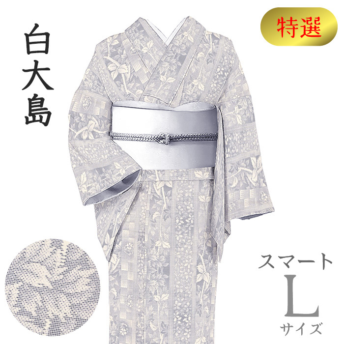 > 着物だいやす SALE525■本場大島紬■白大島紬 草花縦縞文 ほていや誂え 9マルキ スマート 身長サイズ:L春の紬【送料無料】【中古】