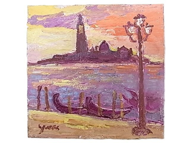 - e13593 真作保証 油彩 風景画 吉賀幸夫 「サンジョルジョ島の朝」 額縁 160*160mm 同梱不可