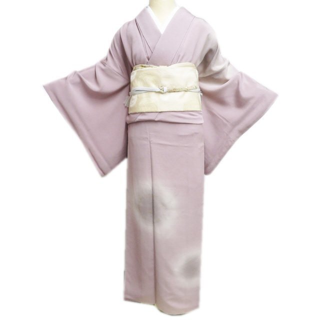 > 付下げ 付け下げ 訪問着 着物 中古 袷 紋付き 縮緬地 暈し 花の図 梅鼠色 多色 金 身丈166.5cm 裄70cm L トール きもの北條 A1265-2