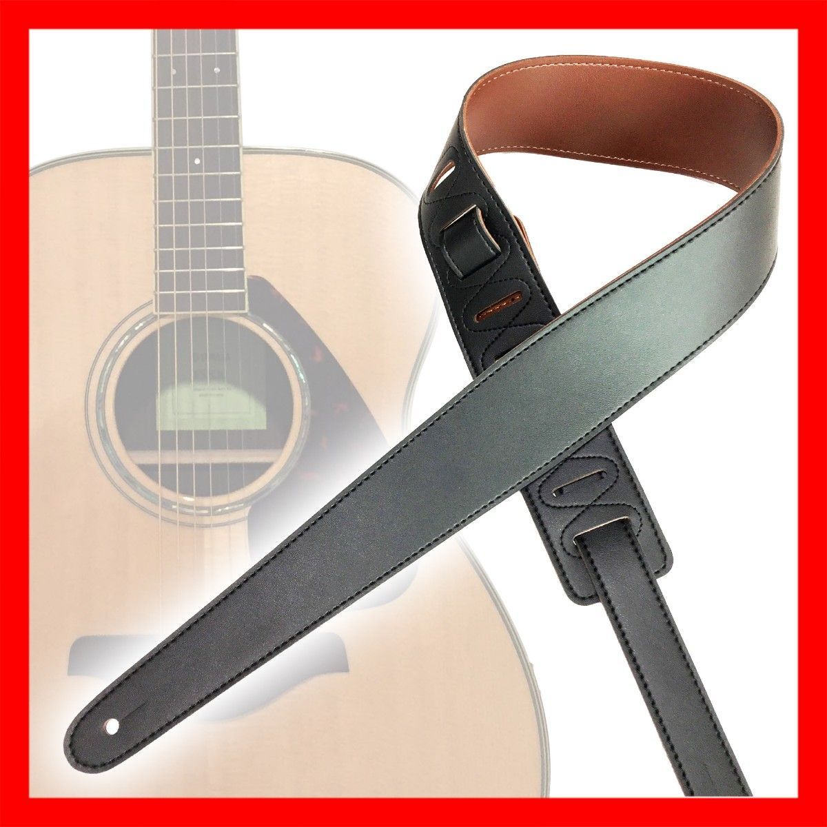 - ギターストラップ ベルトショルダー 黒ブラック PUレザー調 丈夫 リバーシブル ブラウン ベースストラップ アコースティック