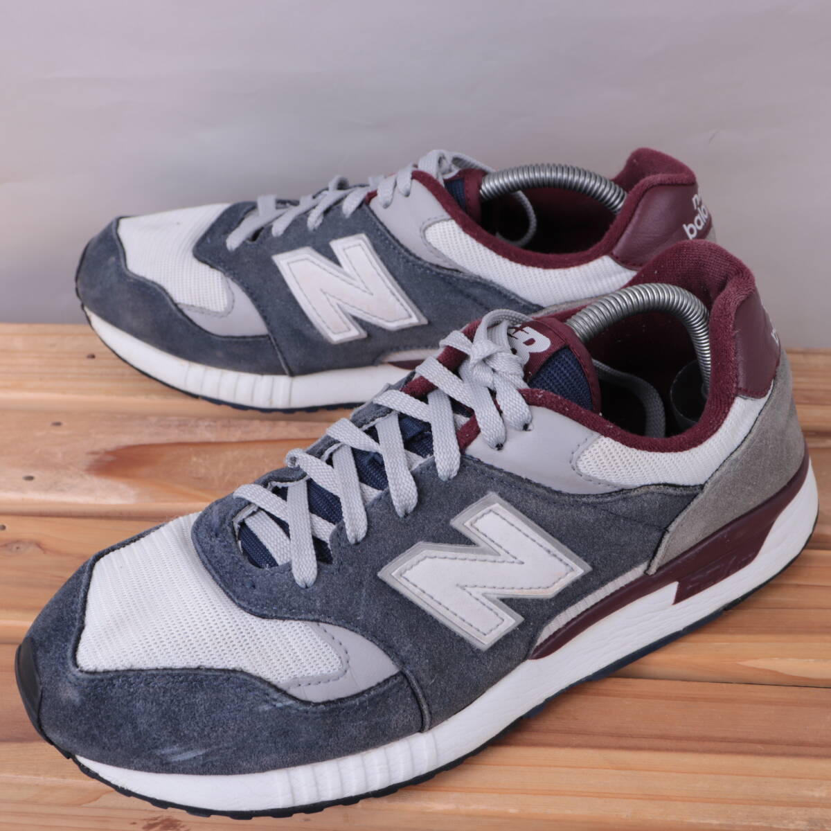 > z1580【570】ニューバランス US9.5 27.5cm/紺 ネイビー 白 グレー バーガンディー newbalance メンズ スニーカー 中古