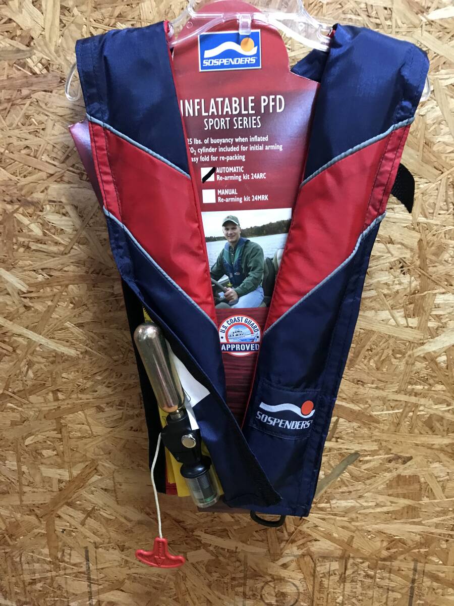 - 軽量型 スターンズ SOSPENDERS 自動膨張 ライフジャケット ボンベ交換済み 未使用品 釣り ダイワ シマノ ボート