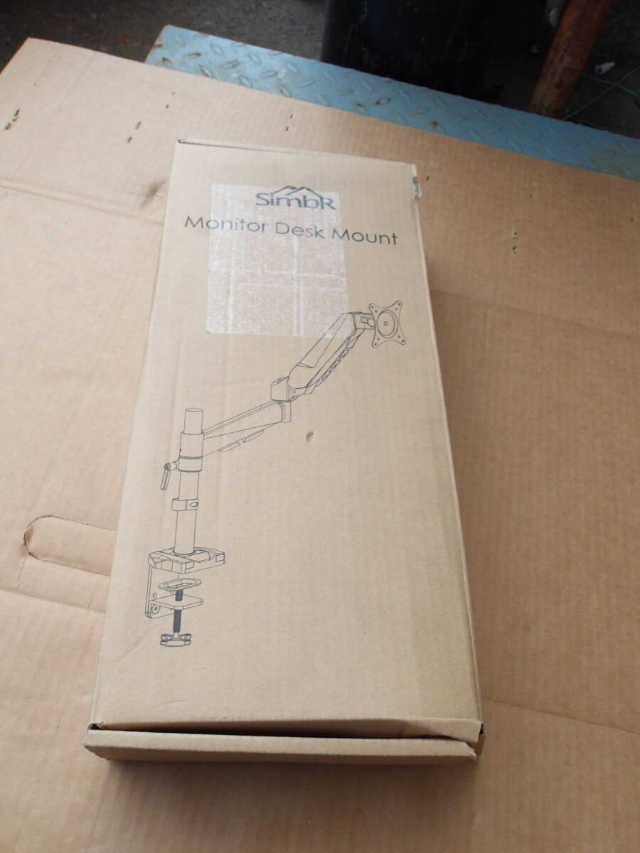 - 【4257】未使用品 SimbR シングルモニターアーム 箱付き 未開封(撮影の為開梱) 説明書付き 15~27インチ対応 360℃回転 モニター 埼玉より