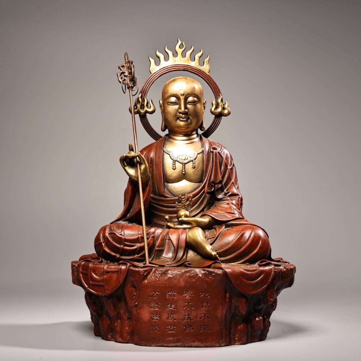 > 【超珍館蔵】紫銅製 塗金 地藏王菩薩像 仏像 宗教 仏教古美術 供養品 古賞物 古董品 古美術品 時代物 旧家蔵出 稀少珍蔵品