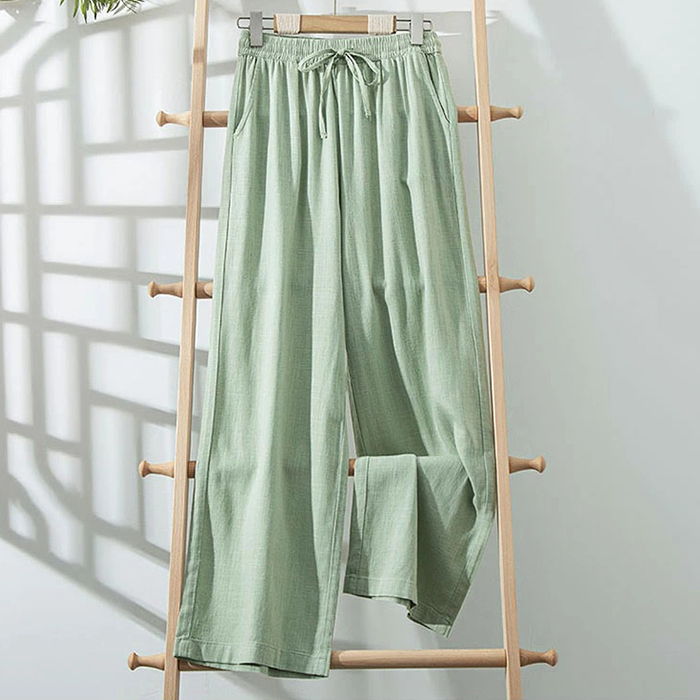 - 九分丈パンツ リネンパンツ レディース カジュアルパンツ ゆったりズボン 麻混素材 Zasa0003 グリーン パンツの長さ:九分丈パンツ