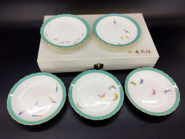 - サ/ 香蘭社 仲良し 銘々皿 5枚セット 絵変わり プレート 箱付き /HY-1108