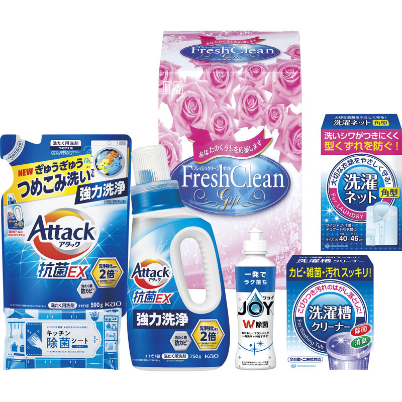 〇注意事項・送料800円が販売価格に含まれています・お取り寄せ商品です。弊社にて手配後、メーカー・卸業者からの直送になります。・まれにメーカー欠品、出荷遅延等が発生致します。問題発生時は別途メールにてご連絡致します。・配送方法の指定、日時指定、置き配、ギフト対応、他商品との同梱配送などは対応できません。・まとめ買いや複数購入の場合は通常より発送に時間が掛かる場合がございます・複数個口の場合、2階以上への搬入ができない場合があります。(その場合は1階での受け渡しとなります)・大型連休、お盆、年末年始などは発送をお休みさせていただく場合がございます・メーカー都合により、パッケージは予告なく変更される場合がございます・梱包用のダンボールはリサイクル品を使用させていただきます。・注文に関するご連絡(注文確定通知・発送通知など)はメールでご案内させていただきます※商品ページの内容について、少しでもご不明な点などがございましたら購入前に一度ご連絡ください〇商品説明あらゆるギフトシーンにおすすめです!強力洗浄のアタック抗菌EXと油汚れも菌もしっかり落とす除菌ジョイコンパクトのギフトセットです。〇商品仕様●内容:花王アタック抗菌EX:750g・つめかえ:590g・P&G除菌ジョイコンパクト:170mL・洗濯ネット角型・キッチン除菌シート(10枚入)・洗濯槽クリーナー:(50g×2包入)×各1規格●化粧箱入(160×280×115mm) 2000g●加工地:日本(出典:株式会社 八大)