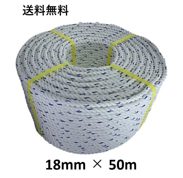 - 送料無料 スパンエステルロープ エステルスパンロープ 18mm×50m 綱引きロープ 三つ打ち ロープ 線入