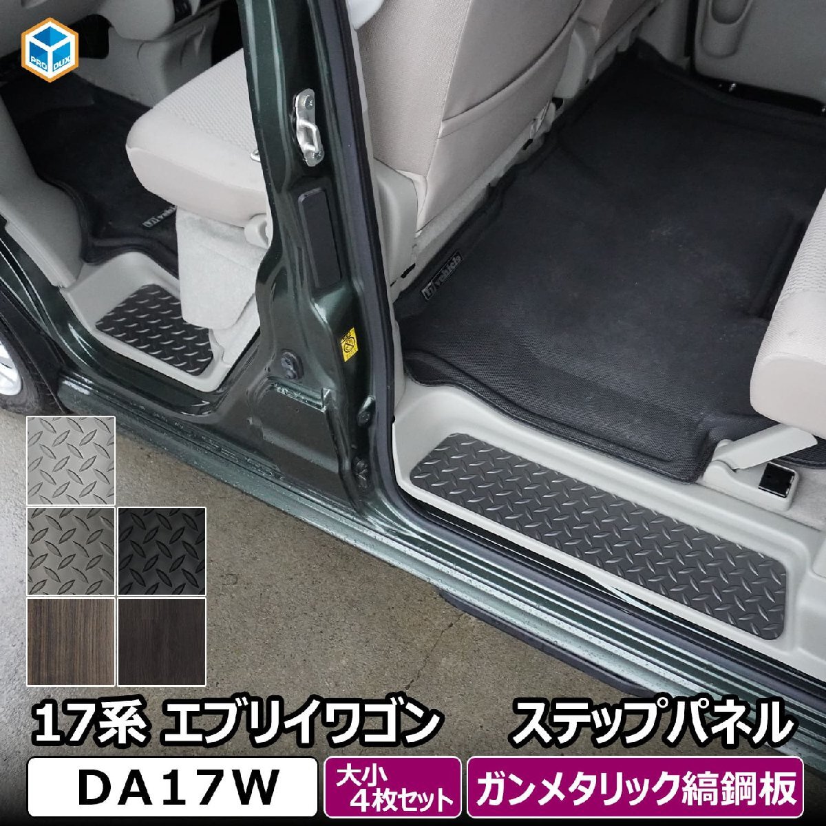 17系 エブリイワゴン ステップパネル 4枚セット 【ガンメタリック縞鋼板】 スズキ ステップカバー カスタム ステップボード ステップガード