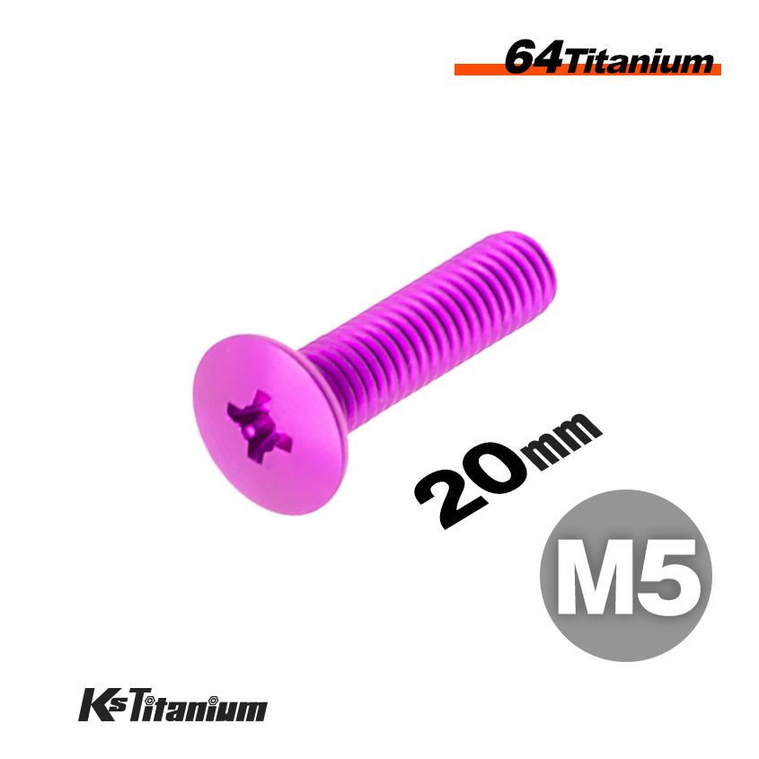 > 64チタン ボルト M5×20 全ネジ P0.8 1本売り パープル 超低頭 十字穴 プラスネジ バイク レストア パーツ チタン カスタム 旧車 レストア